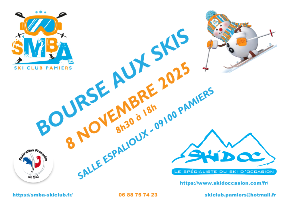 Le Samedi 8 Novembre 2025 se déroulera la traditionnelle bourse aux skis à la Salle Espalioux, rue Amouroux à Pamiers (entre la CPAM et l’Office du Tourisme).